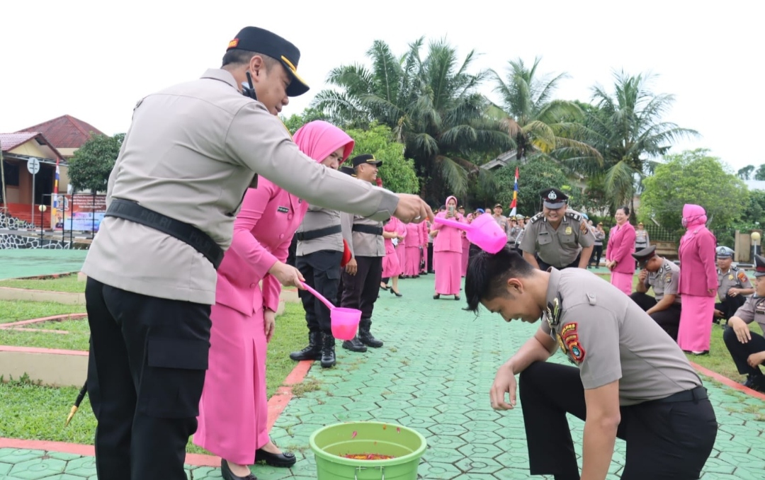 Tradisi upacara pemberian kenaikan pangkat tersebut digelar di halaman Mapolres Bangka Selatan, Senin (30/06/2025).